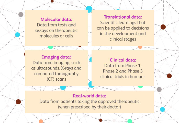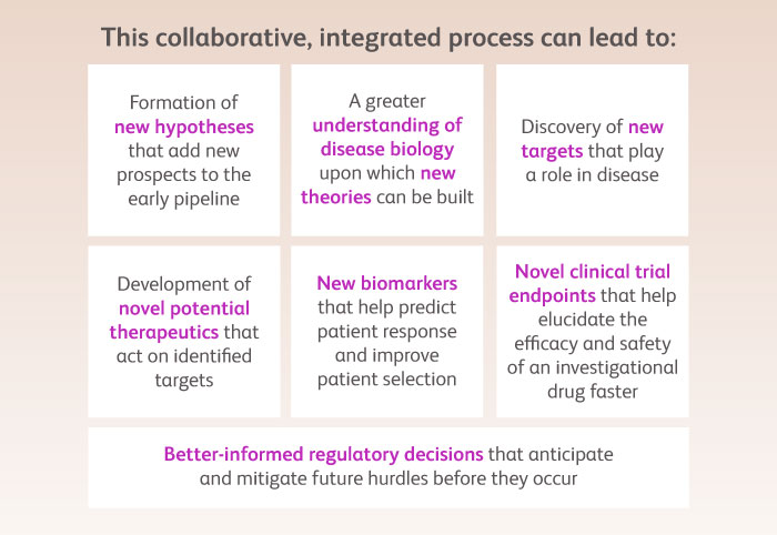 Much of the complex data generated by experiments, drug development or patient experiences do not, to the casual or even trained observer, yield immediate insights. Patterns and answers do not simply jump out for the taking but rather are elucidated via further analysis, interpretation and critical thinking. What are the questions that must be answered? What are the challenges that must be solved? Knowing what to ask and how to leverage answers and make predictions derived from identifying patterns in the data is the key that unlocks the true potential of data and turns them into knowledge that can inform decisions that advance the development of novel therapies. For example, if new, validated and precise clinical trial endpoints can be developed using data, then there is an opportunity to accelerate the path to approval for new therapeutics, thereby giving patients quicker access to medication.